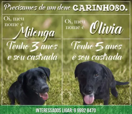 Olívia é labradora pura, castrada, muito carinhosa. Adora brincar.