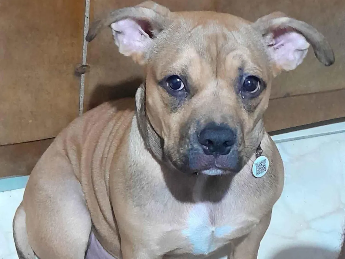 Essa dog de 8 meses com raça Staffordshire Bull Terrier, está a procura de um novo lar que possa cuidar com muito amor e carinho.