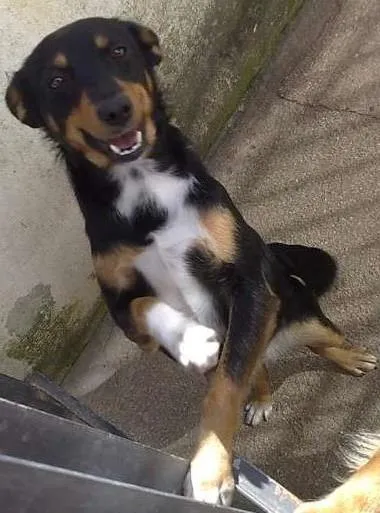 fêmea, adulta, castrada, vacinada e vermifugada, porte médio (10 a 12kg), mais ou menos 7 anos. Muito carinhosa, gosta de brincar, aceita outros cães mas tem ciúmes na hora da comida. Está na Vargem Pequena em Florianópolis - SC.