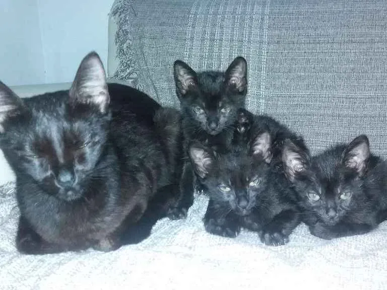 Quatro (04) lindos gatinhos pretos para adoção, sendo três machos e uma fêmea.