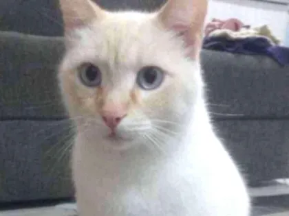 Gato macho Branco de olho azul peludinho ,fofinho,castrado.idade 1 ano e 10 meses.brincalhão e convive com cachorro bem tranquilo.