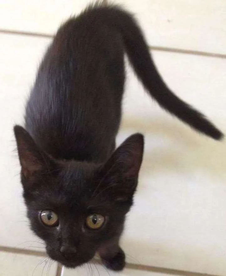 Encontrei essa gatinha perto de casa durante um dia de chuva muito forte e decidi recolhe-la, porém não tenho como ficar com ela pois moro em um apartamento pequeno e já tenho uma gata que não se dá bem com outros gatos.
