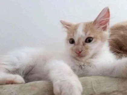 Filhote macho de pelo longo branco com manchas amarelas... usa caixinha e já vermifugado... adora brinca e tem 8 semanas