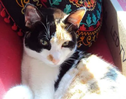 Gatinha tricolor, muito dócil, sociável e carinhosa. Usava coleirinha vermelha e desapareceu no Bairro Santa Mônica, próximo ao Bar Frango & Fritas.
