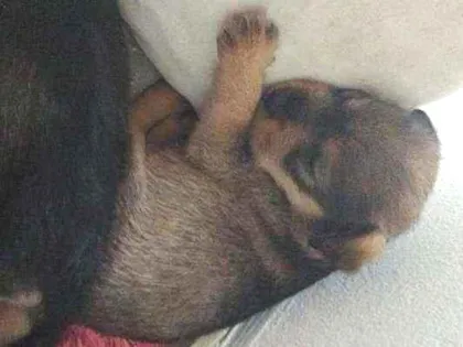 A mãe do cachorro é da raça Schnauzer, mas o pai é SRD