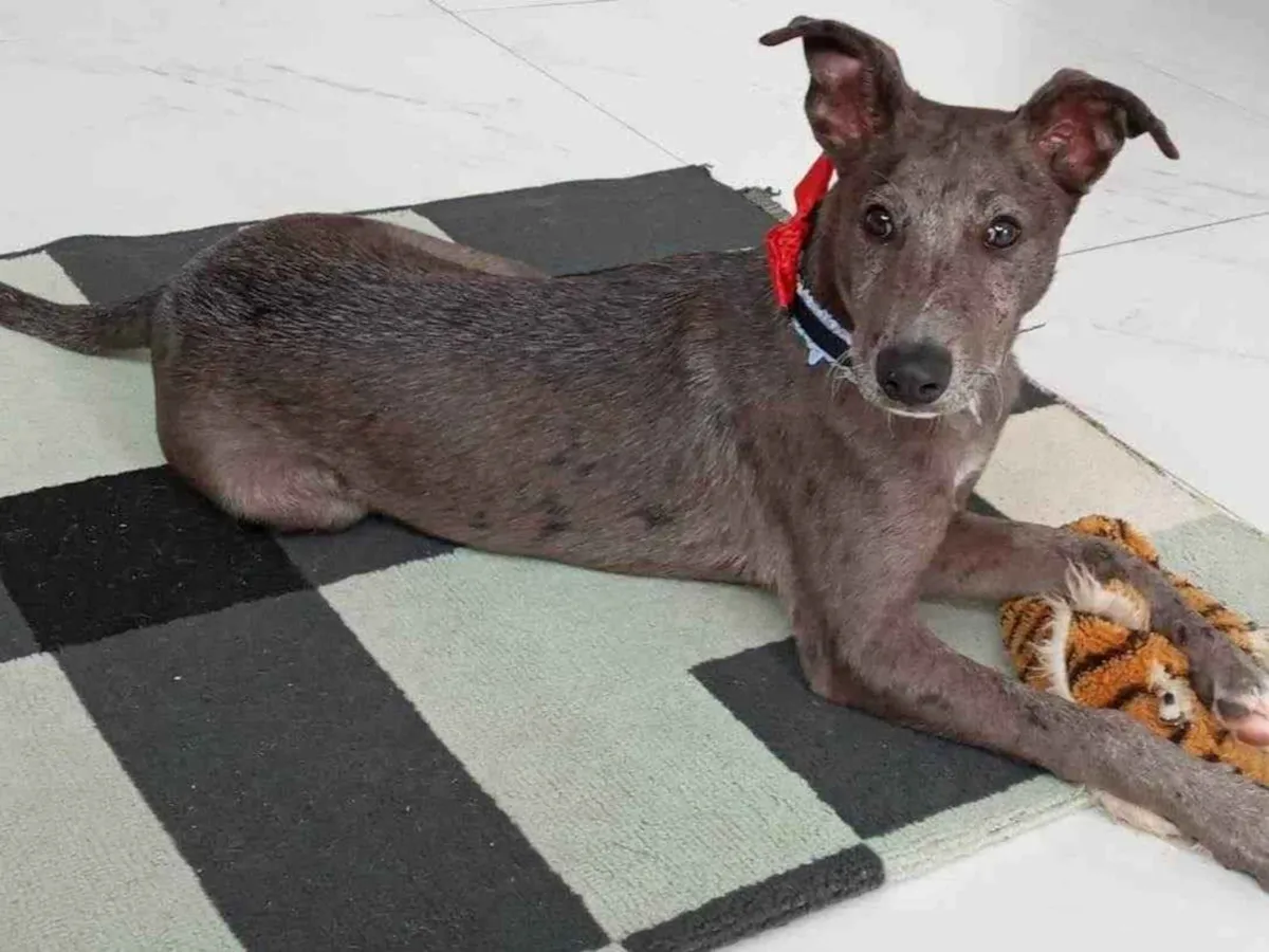 Adoção do Brendo, um adorável filhote macho Whippet/SRD de 2 a 6 meses. Ele foi encontrado e busca um lar amoroso em Palhoça/SC. Cuide dele com carinho!