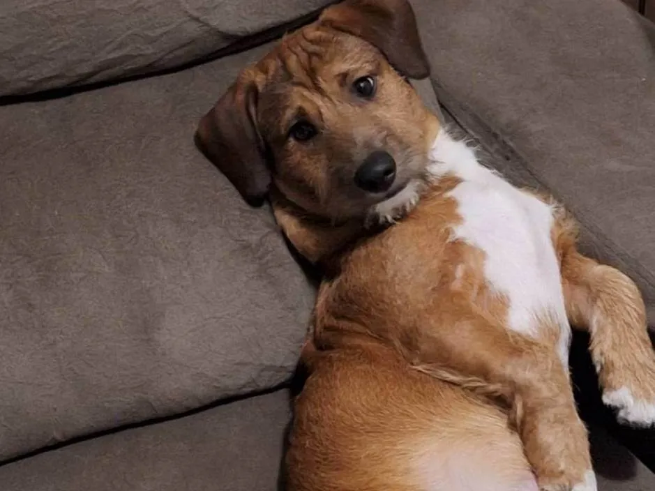 Cachorrinho carinhoso e tímido precisa de um novo lar. Ama carinho na barriga e no pescoço. Busco adotante responsável, pois não posso mais ficar com ele.