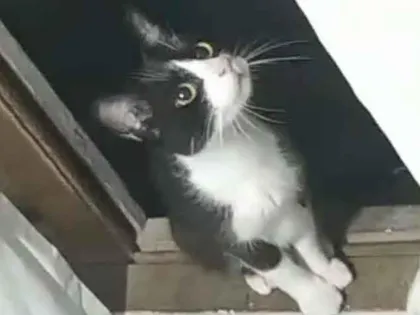 Gata cor branca e preta, muito carinhosa e tranquila.