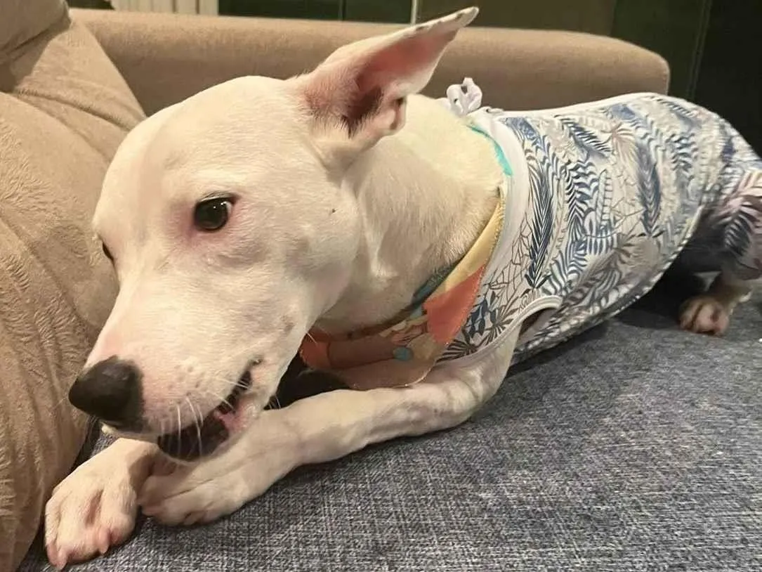 Depois de ficar dias internado, se recuperou, foi castrado, vacinado e hoje está pronto para encontrar uma família que o acolha e lhe dê todo o carinho que ele merece. Ele é muito amoroso, se dá super bem com outros cães e já sabe dar a patinha! Tem 12,3kg, os veterinários estimam que ele tem 1 ano e meio e não vai crescer mais.