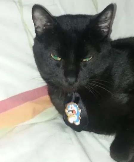 Gatinho preto, dócil e amoroso, castrado e em recuperação de fraturas, procura um lar cheio de carinho. Adote e faça a diferença na vida dele.