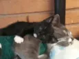 Doa se gato filhotes 2na cor preta com as patinhas e fucinho branco e 1 preto puxado pro cinza inteiro estao com 2 meses .