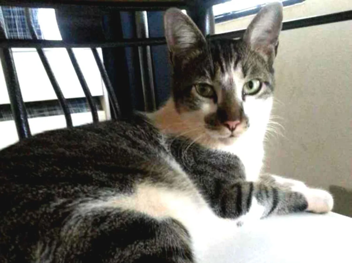 branco com manchas cinzas e riscos pretos