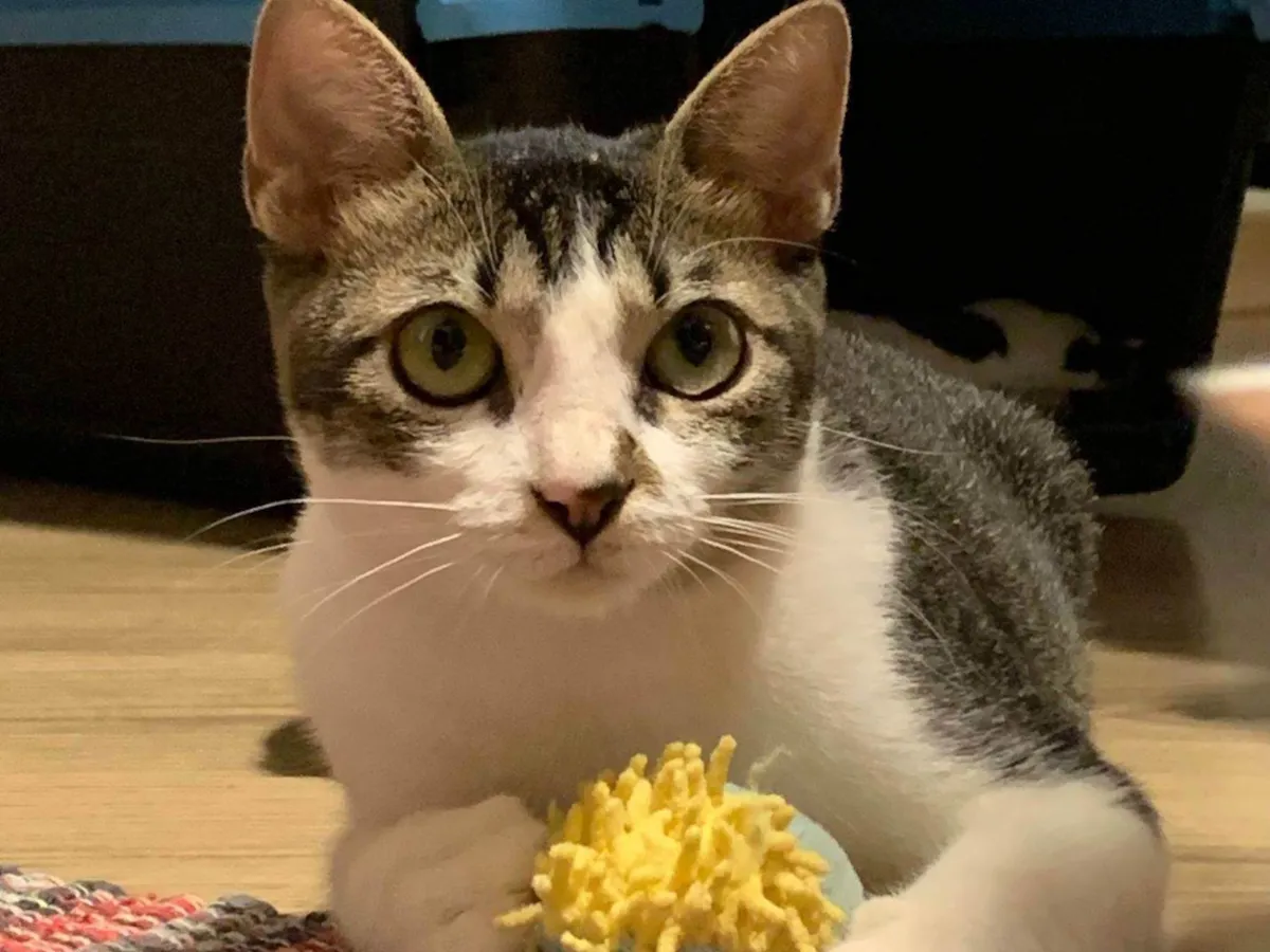 A Bombom ainda é um pouco insegura, por conta de tudo o que passou na rua, mas com muito amor e paciência, ela se tornará uma gata super carinhosa!!!
