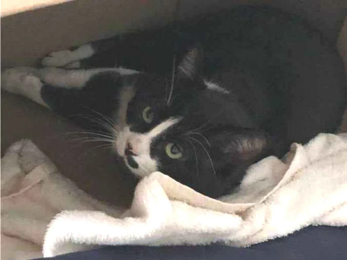 Adote o gato Pipoca, um lindo SRD branco e preto de 3 anos, dócil e sociável. Perfeito para apartamentos ou casas com quintal. Encontre seu novo amigo!