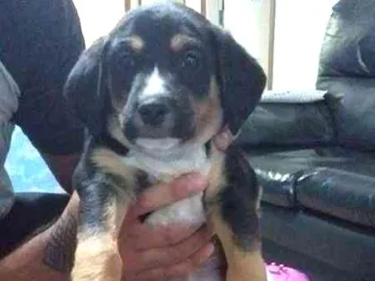 Aparenta ter menos de 2 meses, mas tem o porte indefinido. É brincalhão e bem ativo, aceita bem pessoas e animais desconhecidos e já come ração.