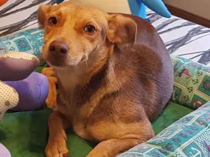 Jujuba foi abandonada numa praça. Tem cerca de 6 meses.Pequeno porte, mix de salsicha, tem 9 kg, olhos verdes, não cresce mais. Já foi vacinada (2 doses V8 importada e Raiva), vermifugada e castrada. Se sente sozinha porque os outros cães no LT são idosos e não brincam com ela.