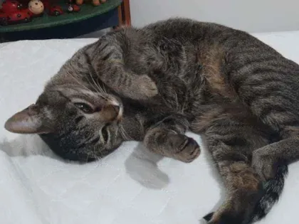 Peguei essa gatinha e dei lar temporário, mas tenho sérios problemas respiratórios e não posso ficar com ela.