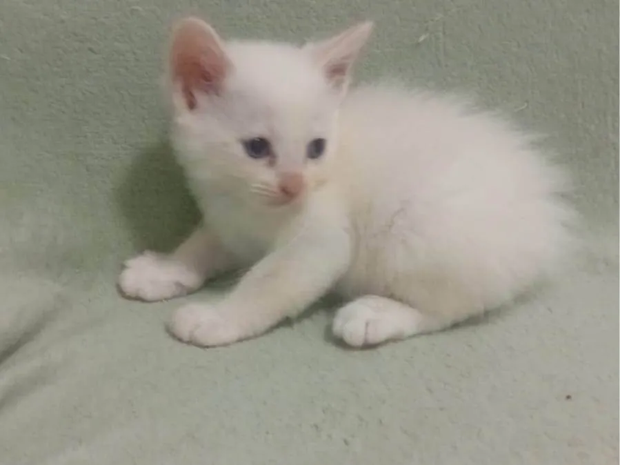 Conheça o Nino, um encantador gato macho da raça SRD (sem raça definida) com pelagem branca e cheio de energia! Com menos de 2 meses, este pequeno está à procura de um lar amoroso e acolhedor.
