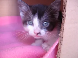 Esse gatinho foi encontrado numa caixa de papelão lacrada com fita, nós o acolhemos, porém já tenho outros 4 gatos resgatados e não tenho condições de assumir mais um. É um macho, pelo semi longo, olhos azuis, tem cerca de 45 dias, já come ração e usa a caixa de areia direitinho. É brincalhão, ronronento e adora um colo. Se deu bem com outros gatos.