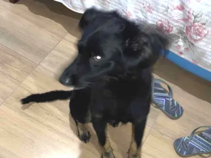 Cão não castrado e não vacinado, vive em casa, saudável e sem pulgas. Arisco com estranhos, mas carinhoso após confiança. Ideal para adoção responsável.