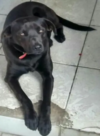 Ajude a encontrar Sheik, vira-lata com labrador preto desaparecido em Mauá. Recompensa disponível. Informações são cruciais para a família.
