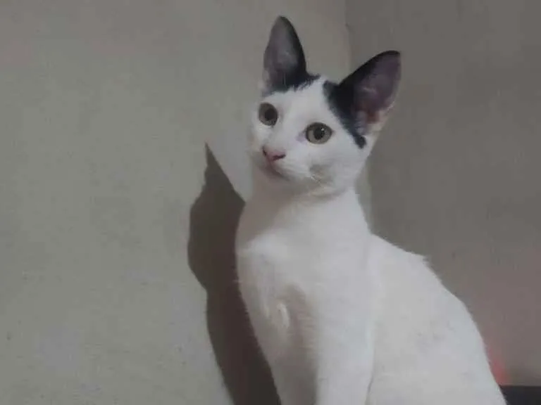 Linda gata filhote para adoção: pelagem branca e olhos verdes