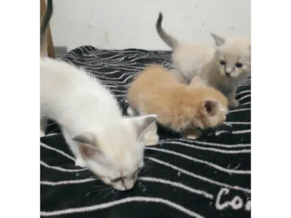 Adote um dos nossos adoráveis gatinhos SRD! Com apenas 2 meses, 2 fêmeas e 1 macho de pelagem média e olhos azuis estão prontos para encontrar um lar amoroso.