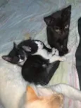 São um total de 3 filhotes: 2 fêmeas e 1 macho.Uma das fêmeas possui a pelagem toda preta e os demais pelagem branco e preto
