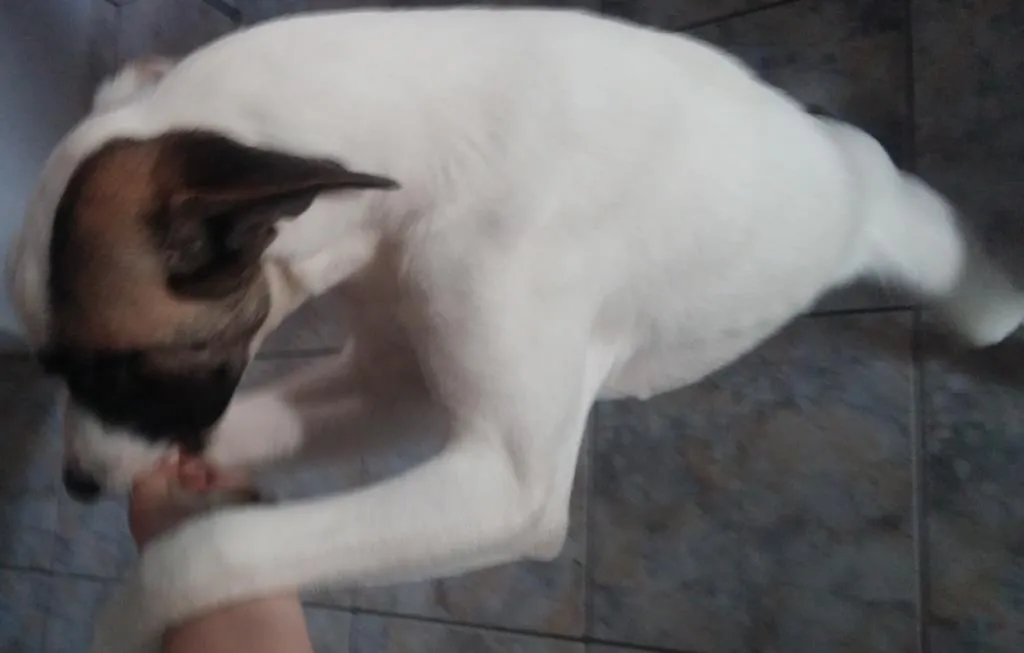 Resgatei Bob, um filhote doente, há 6 meses. Agora forte e saudável, preciso de ajuda para encontrar um novo lar devido à falta de espaço.