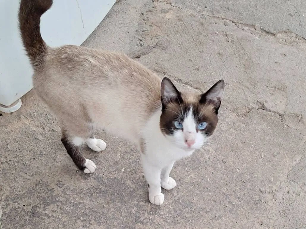 Esse gatinho apareceu no meu quintal há uns dias, mas não sei quem é o dono! ele está bem magrinho, dei um pouco de ração. Mas não posso cuidar, pois, já tenho uma gatinha e, meu pai não deixa eu criar mais um. Por favor se lerem, dê um lar a esse gatinho; manso e carinhoso! Só precisa de cuidados, e amor..