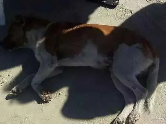Cão abandonado na praia da Enseada com sarna. Precisamos de ajuda para cuidar dele. Local: quiosque Hilário, rua dos Bancários, número 90.