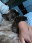 Nana, gata siamesa meiga e carinhosa, procura um lar cheio de amor. Adote esta fofura e faça a diferença na sua vida e na dela.