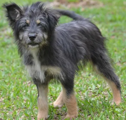 Pesa 5 kilinhos, peso do dia 02.10.15, como é filhote ainda crescerá, acreditamos que ficará porte pequeno/médio no máximo.