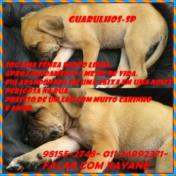 ADOÇÃO RESPONSÁVEL. FÊMEA 2 MESES. FOI ABANDONADA EM UMA CAIXA , MUITO CARINHOSA E FOFA. QUER MUITO UMA MAMÃE OU UM PAPAI FICARÁ MÉDIA.