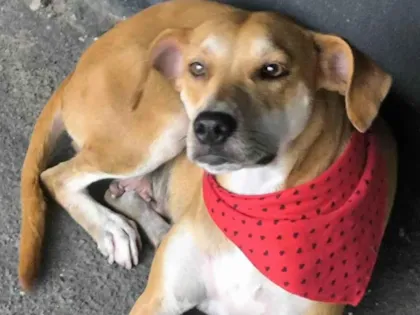 Essa linda cadelinha de pelagem caramelo é a Fiorella, uma SRD de 1 ano, castrada, vacinada e vermifugada. Resgatada das ruas, onde estava muito magra e cheia de filhotes, agora ela busca por um lar amoroso.