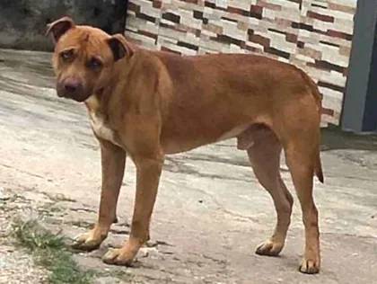 Cachorro pitbull parece perdido, porque está muito bem cuidado em Guarulhos, bairro Stos Dumont.