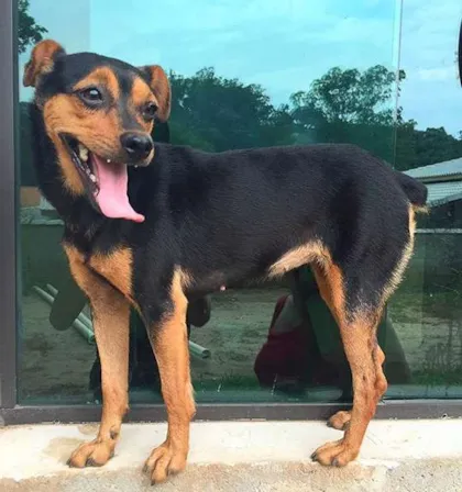 Foi atropelada em frente à prefeitura, nos trouxeram ela, ficou em recuperação e está pronta para ser adotada.