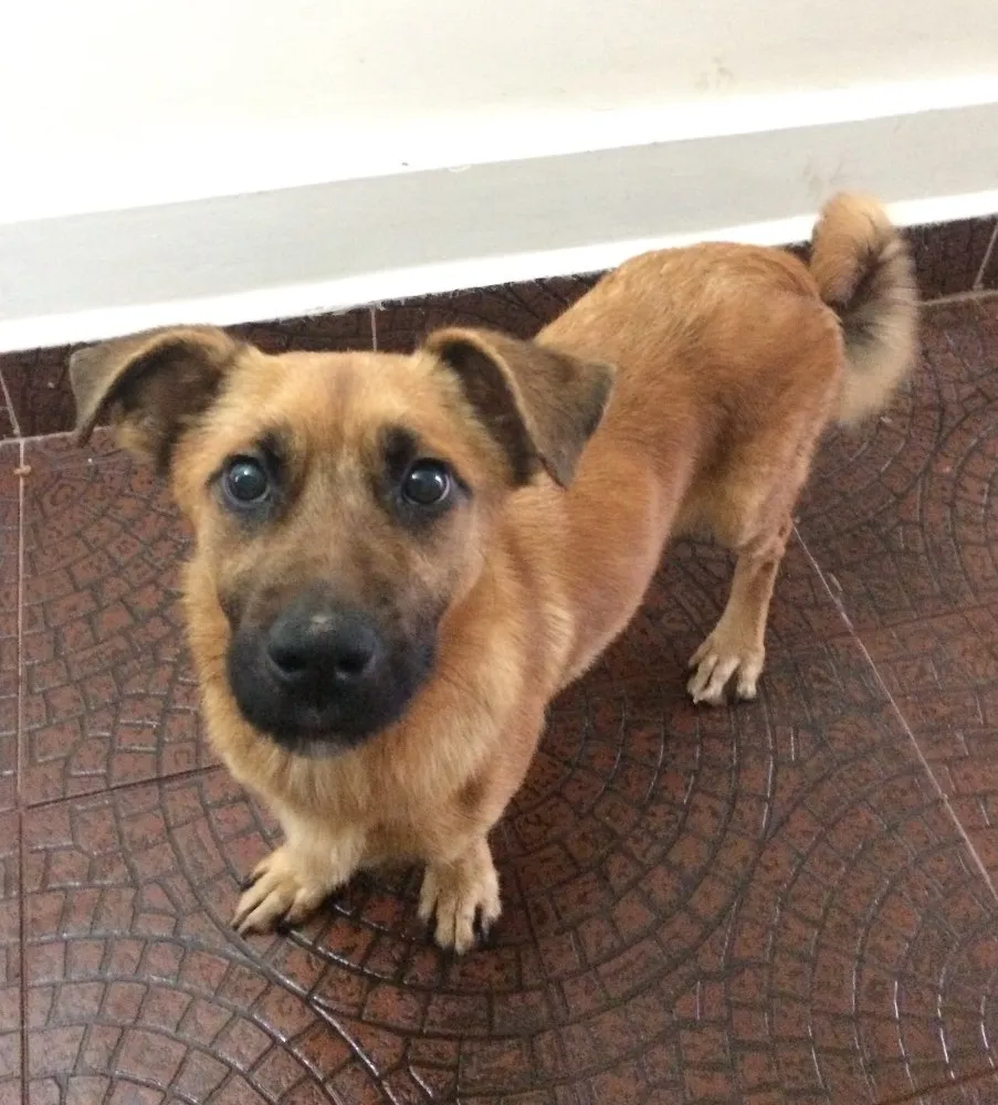 É SRD, porte pequeno e tem entre 8 meses a 1 ano.