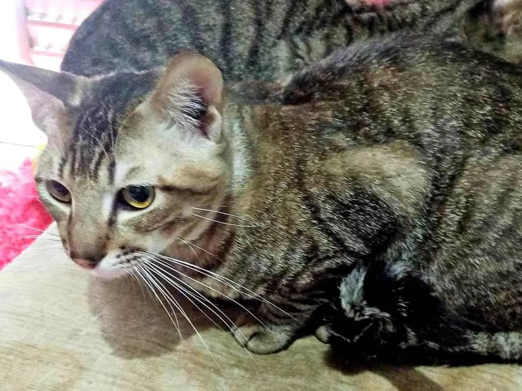 Esse gatão está com uma pessoa que perdeu o controle da quantidade de gatos, então castramos todos e estamos ajudando a doar.
