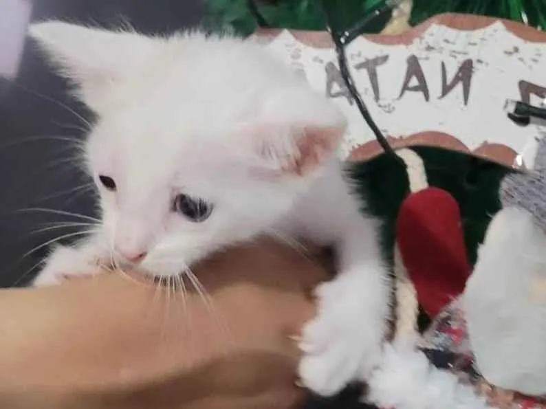 Ela branca dos olhos azuis e muito dócil.