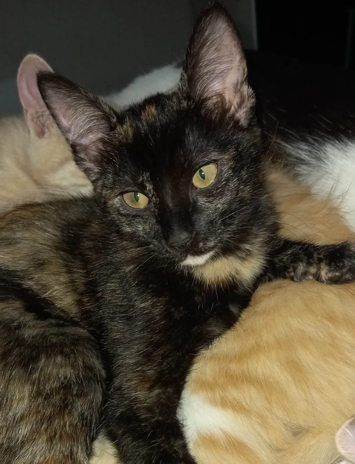 Sou uma filhotinha fofa que nasceu de uma ninhada de 7 gatinhos.
