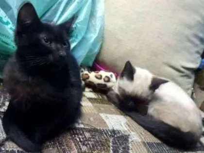Encontramos esses dois gatinhos dentro de uma cesta desamparados no meio da rua.