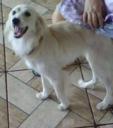 Procura-se a Clarinha, cachorra de porte médio e pelo branquinho, que fugiu com coleira vermelha. Ajude a encontrar essa amiga dócil e amada!