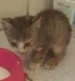 É uma gata pequena e rajada, meiga, amorosa e procura por um dono que lhe dê carinho, cuidados e um lar.
