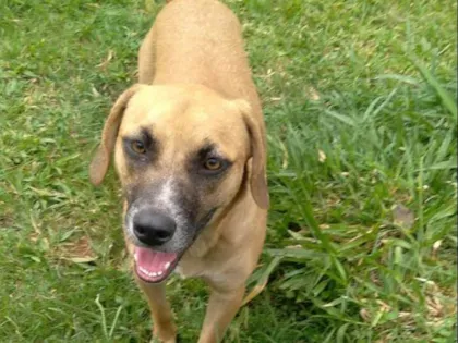 Adote Mel, uma cadela SRD de 4 anos em Itaquaquecetuba/SP. Dócil e pacata, ela se dá bem com outros animais. Seja a família que ela merece!