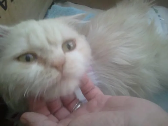 Gato Persa encontrado no Bairro Santa Maria. Está sendo tratado pois teve o seu rabo cortado, foi castrado e agora está recebendo tratamento para problema urinário (bexiga presa). Não podemos ficar com ele pois já temos outra gata e ela não aceita um estranho em seu espaço.