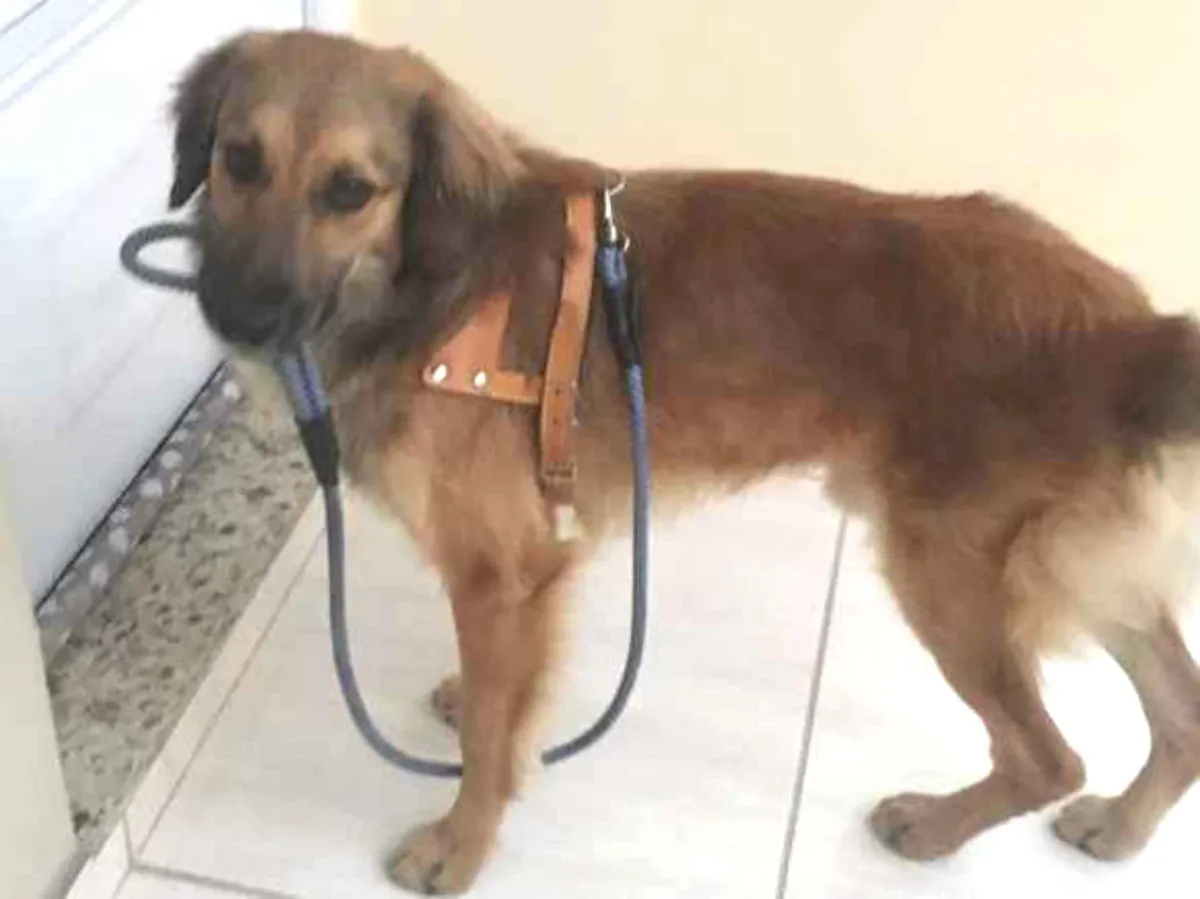 Encontramos esse cãozinho no aeroporto à uns 15 dias, infelizmente ele não se levantava devido à um fratura no Pubs e luxação na coluna. Já fizemos a parte do tratamento pra dor e agora ele está apenas na parte de recuperação. Já compramos cartilagem pra ele tomar por 30 dias, ele já está andando, cambaleando um pouco com as patas traseiras, a pata esquerda ainda é a mais debilitada, porém o veterinário acredita que ele tenha uma ótima recuperação. Desde o dia que o resgatei, ele chora para fazer as necessidades na rua. Adora crianças e é muito carinhoso, amigável com outros animais. Infelizmente eu não posso ficar com ele porque já tenho dois cachorros e um deles é territorialista e já tem 9 anos de idade. O Veterinário acredita que ele tenha entre 2 e 3 anos de idade. Acabei de comprar um pacote de ração super-premium da Atacama, de 14Kg, pra ajudar a engordar e nas articulações. Devido ao fato que ele não andava e estava na rua, não se alimentava direito e o corpo acabou consumindo seus músculos traseiros, portanto ainda vai ganhar um pouco de peso. Hoje ele pesa 14.3Kg, mas o veterinário acredita que ele chegue a pesar uns 22Kg quando totalmente recuperado. Já demos a primeira dose das vacinas e quando for tomar a segunda dose, vamos pagar por ela. Se quem adotar quiser, pagamos pela castração também. Ele me deixou dar banho e escovar seus dentes enquanto sentava no box do banheiro.