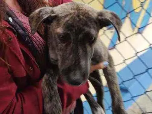 Cachorro macho novinho com pelagem curta tigrada. Muito bonzinho com desconhecidos e crianças. Não late e é muito dócil.