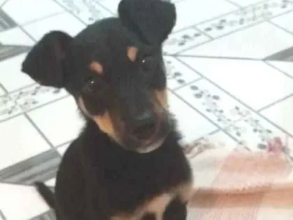 Adote a doce Sofia, uma cadela SRD de porte médio com 2 a 6 meses. Ela é carinhosa e procura um lar amoroso. Venha conhecer essa fofura!