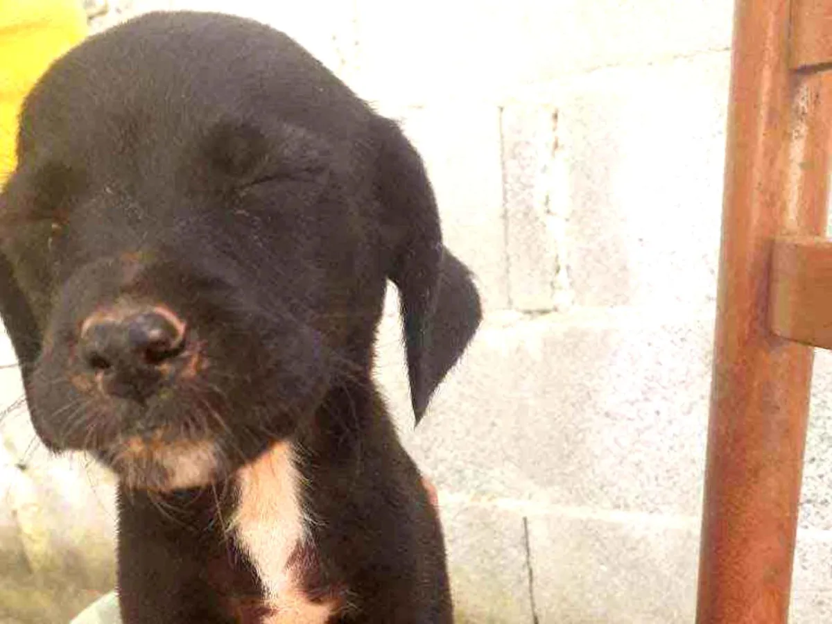 Adote a Luna, uma linda cadelinha SRD com menos de 2 meses. Filhote fêmea, carinhosa e pronta para um lar em Mairiporã/SP. Ajude a dar um novo lar!
